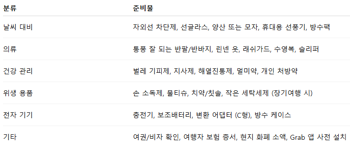 다낭 여행을 더욱 쾌적하게 만들어줄 필수 아이템들을 아래와 같이 정리했습니다.